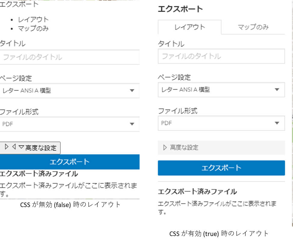 ※左が CSS の設定が false 時、右が CSS の設定が true 時