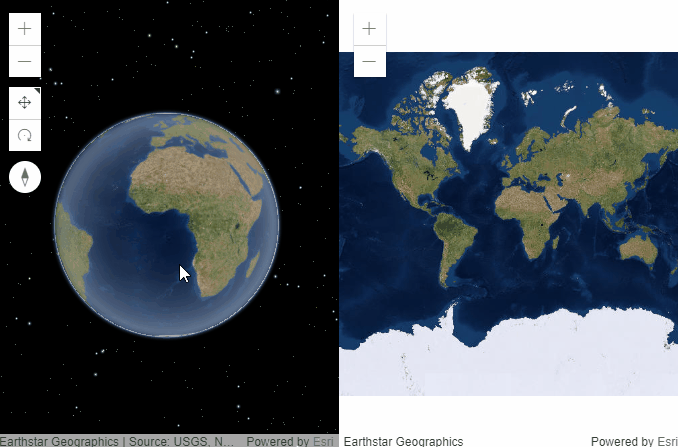 さらに、同じ Map を 2D(MapView)、3D(SceneView)で描画する、ということも可能です。