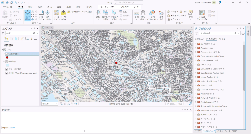 このように、ArcPy からもジオプロセシング ツールを簡単なコーディングで実行することができました。また、前回の記事でご紹介した、取得したオブジェクトをジオプロセシングツールの引数として解析などに使用することもできますので、是非試してみてください。