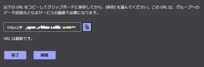 URL は後ほど使用するため、コピーして控えておきます。[完了] をクリックし、通知先の設定は完了となります。
