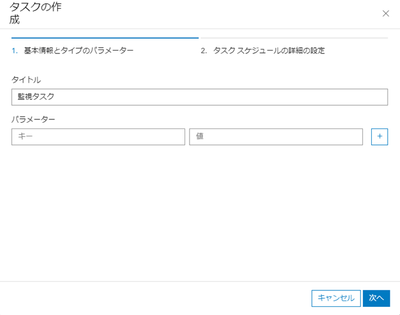 タイトルを入力し、[次へ] をクリックします。今回はパラメータの使用はしないため、空欄のままとします。