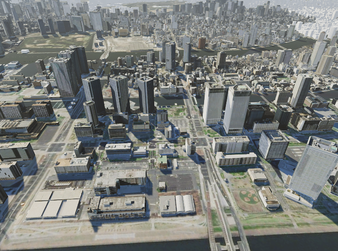 3D メッシュ シーン レイヤーは、ドローン等で撮影した画像とサーフェス モデルの両方を組み合わせ、都市レベルでの建物、道路、樹木、河川等の多くの構造物を1つの連続したサーフェスに統合します。都市全体の構造物を 3D で表現する際に最適なレイヤーです。この ArcGIS で作成・共有された 3D メッシュ シーン レイヤーを利用することで、よりリアリティのある都市を表現できます。