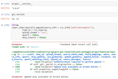 However trying to append data into ArcGIS Enterprise using the 2.0.1 version, it throws another exception: