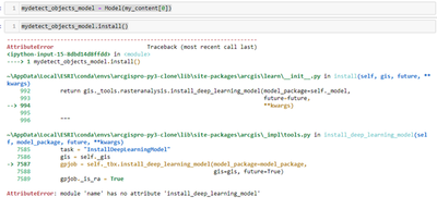 The version of my arcgis is 1.8.1, and ArcGIS Pro is 2.6.2 without Image Analyst license. Is this relative to the error? cause it seems happen at tools.py at 7587 line, _tbx.install_deep_learning_model().