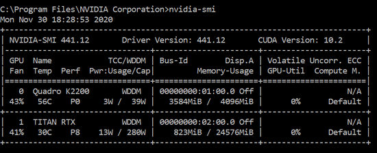 I have 2 GPUs on my system: #0, configured for display, and #1 which is a high-end NVidia Titan RTX for AI processing.