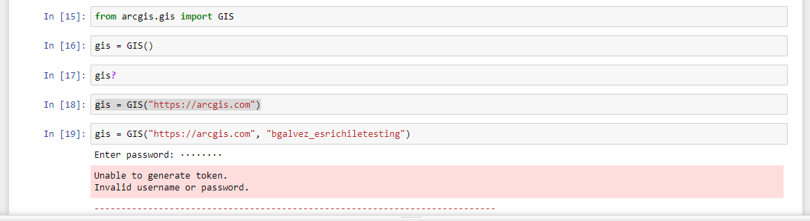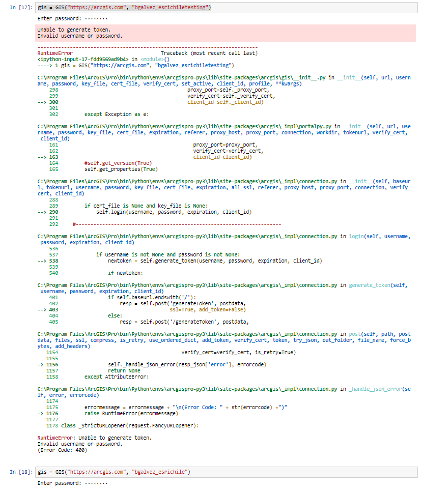 I hope you're very well! I have a problem related ArcGIS Api Python and Jupyter. The issue is that the system not reconogzed the username or password of my account ArcGIS .