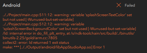 Makefile:78: recipe for target '..\..\Output\android\libAppStudioApp.so' failed