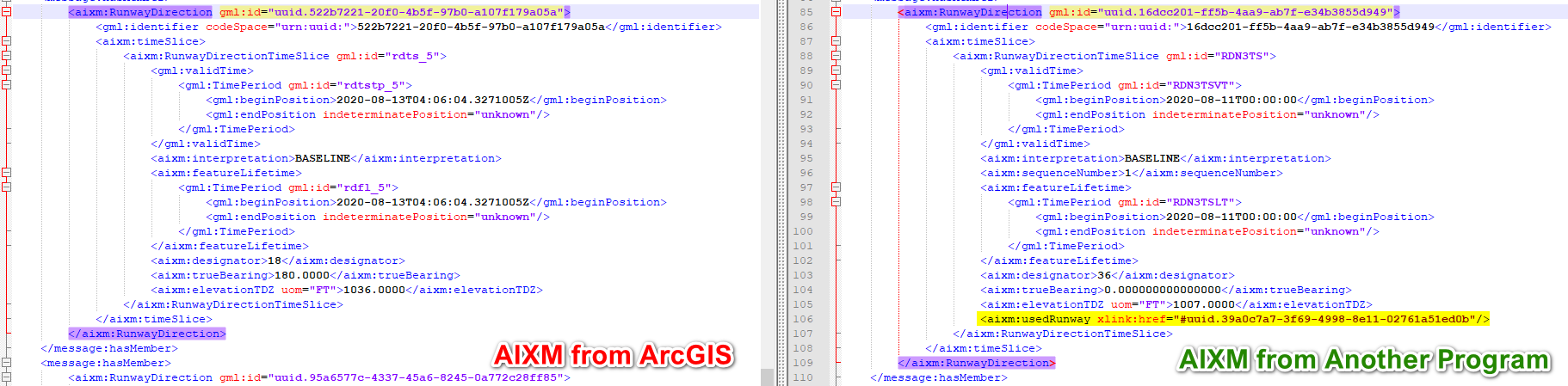 But when I export geodatabase to AIXM 5.1 the problem I've found is this error when I import this AIXM to another program. The "aixm:usedRunway" line in the AIXM file are missing.