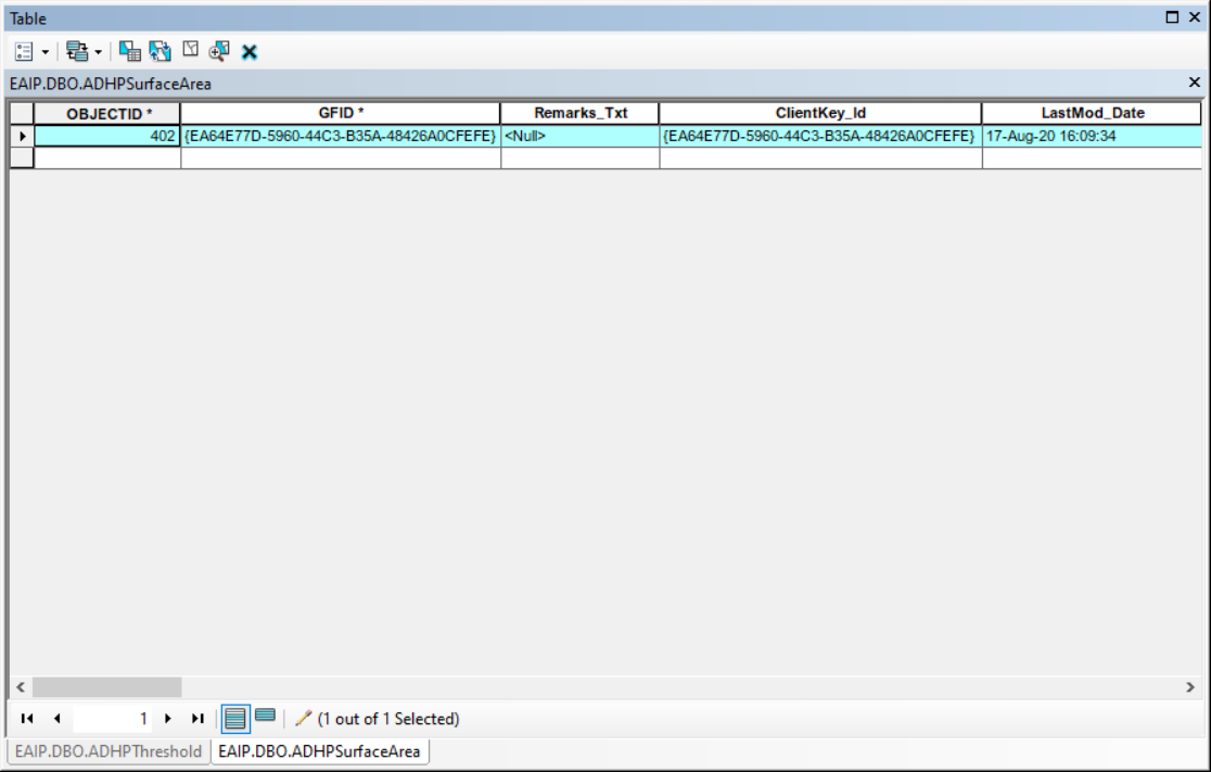 This is my ADHPThreshold's attribute. The ADHPSurfaceArea_Id field is still empty.