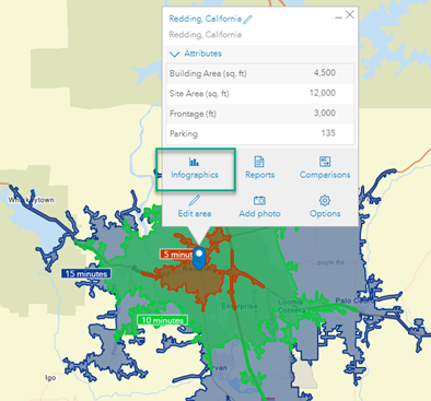 The above use cases are applicable when running infographics in Business Analyst Web app, Community Analyst, Business Analyst Widget in Web AppBuilder, and ArcGIS Pro using the Infographics tool.