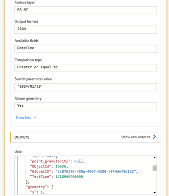 I am trying to use the Get data from feature layer to bring back any records that have been created in the last seven days. Every time I try to query on a date file I receive an error "Cannot perform query. Invalid query parameters". If i query the Feature Layer on a field that is not date, i have not issues. It is only when I attempt to query on the date fields. I have tried using the Available Fields/Comparison Type/Search Parameter Value and the Where fields to do this. Does anyone have any ideas?