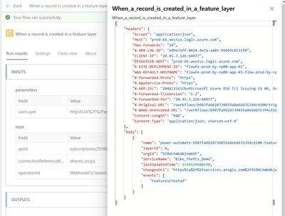 - "The response from the webhook test was successful. The flow is now ready for use." Is returned for ArcGIS Enterprise after the first change is made. Only the subsequent change will return the results.