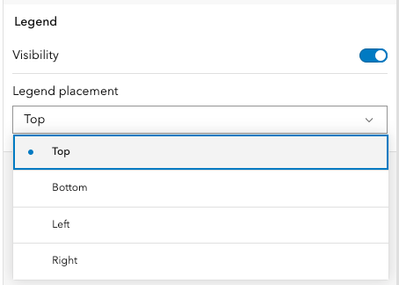 Hi @EllieLinden , in the June 2024 update of ArcGIS Online, we have added support for both "Top" and "Left" placement options for chart legends.