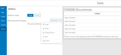 I have an application where we would like a spatial boundary to flash from selections made on a table. I have a table which is based on features and yet flash is not an available action from that table, only filter is. The link below suggests that it should work. Any ideas on why it isn't available on my end?