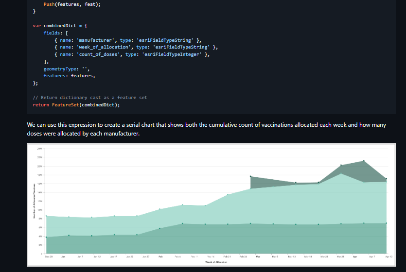 These are featuresets from different projects, but the schema is the same. I know haven't addressed the week bracketing at all yet, I'm just trying to get the data coming into the chart.