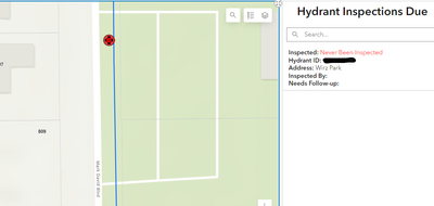 I have created a dashboard to monitor our hydrant inspections. I have configured a list element that has a list of all the inspections that are due to be inspected. I configured it so that when you click on one of the hydrants in the list it will flash and zoom to the hydrant. However, when I click the hydrant from the list and it zooms in, it is not showing the hydrant layer only the hydrant inspection layer (different point layer). If I zoom out and zoom back into the same hydrant inspection manually, then it will show the hydrant layer. It works fine in ArcGIS online. I am not sure if this is a glitch or not. The first picture is if I just zoom into the map manually.