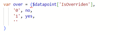 If ($datapoint['IsOverriden'] == 1) var over = 'Score override: Yes';