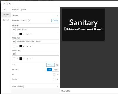 I think there needs to me something in the middle text but the $datapoint["count_Asset_Group"] doesn't work now.