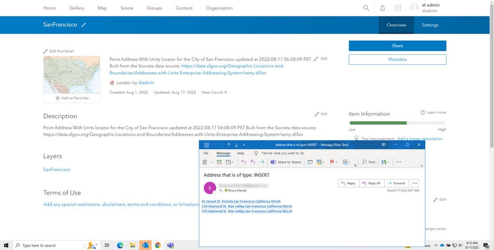 My example scenario happens to be about maintaining a portal locator (i.e. geocode service), a very common foundational service, but read between the lines and picture your full suite of services under continuous management no matter how the data powering them changes. Of course, you don't have to be maintaining a service, your web tool may be doing any sort of geoprocessing.