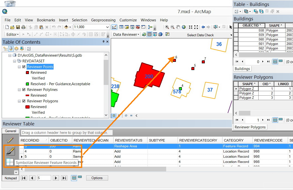 Clicking the “symbolize reviewer feature records” will remove the labels assigned to the feature classes of “REVDATASET”!