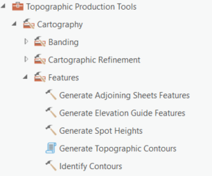 This tool creates data for an elevation guide diagram surround element as required by various supported map product specifications. The tool leverages existing banding and thinning tools to generate output elevation band features, spot height features, and hydrology features. For more information: https://pro.arcgis.com/en/pro-app/tool-reference/topographic-production/generate-elevation-guide-fea....