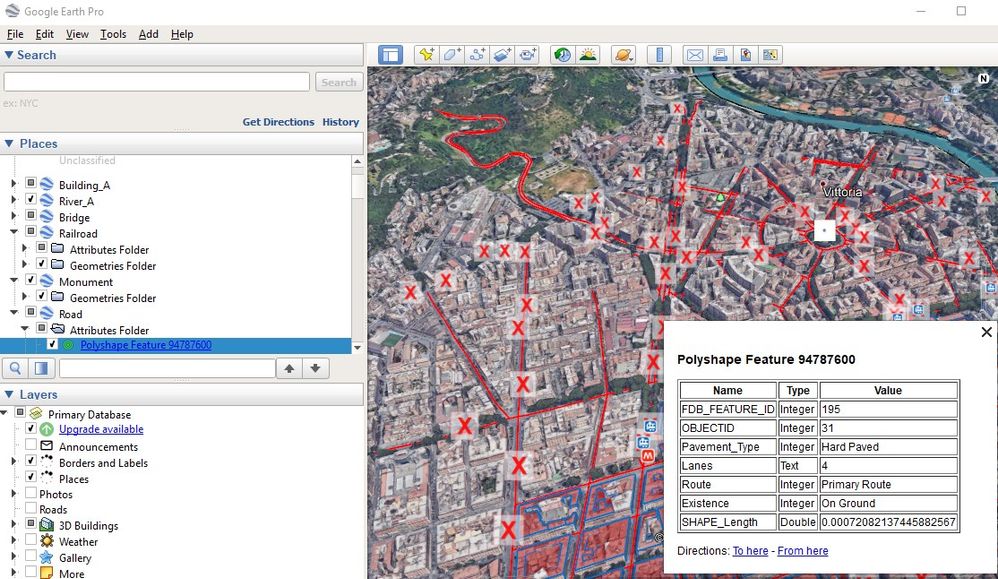 I'm attaching a picture of Google Earth and ArcGISEarth. In Google Earth there is an attribute folder listed in the TOC under the layer. Clicking on those links popup the attributes correctly.
