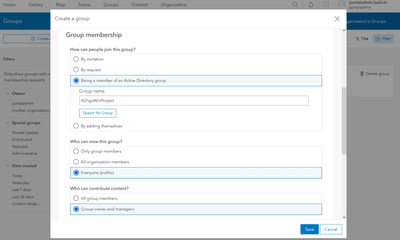 In Portal we want to create groups that are based off of active directory groups. We do not want everyone to be able to contribute to the group, but we want more than just the group owner to be able to contribute. Since the group is based off of an active directory group, the members tab isn't visible and therefore there is no way thought the UI to do this.