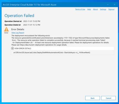 I receive the following error when trying to deploy ArcGIS Enterprise Cloud Builder 11.1 in my Microsoft Azure account.