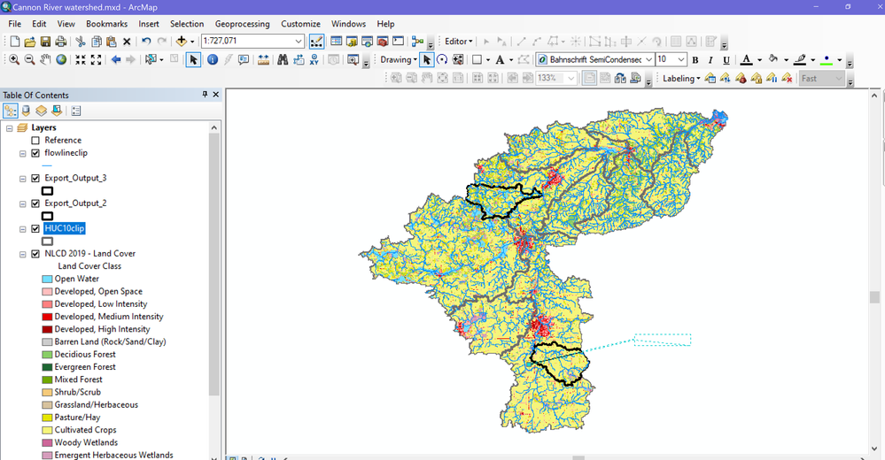 I am trying to manually label the different watersheds (polygons) with call out labels, and placing the text off of the main map because you can't read anything when its on top of the map, plus its already really busy as it is. I want to have the text of the labels to the side of the map, adjacent to the polygon with the leader pointing/calling out to the corresponding polygon. When I try to do this, I can only see the text label when it is on the main part of the map, and when I move the text box to the side of the map to the white background I can only see the text when I have the text box clicked. When I move the textbox from the map to the adjacent area and release, it disappears. I've tried bringing the label to the front, I've tried different fonts, etc. and I cannot figure out how to be able to label the polygons in the way that I would like. Please see the attached images. I really hope someone has run into this issue before...