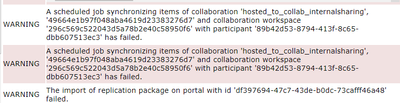| WARNING | The import of replication package on portal with id 'df397694-47c7-43de-b0dc-73cafff46a48' failed. |