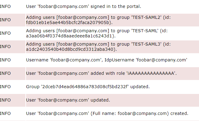 As you can see the user 'foobar' is correctly added to the groups 'TEST-SAML' and 'TEST-SAML2' as it is a member of 'gis-esriportal'.