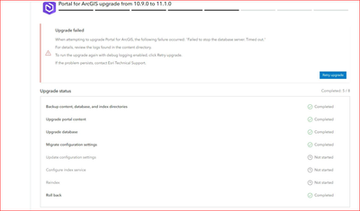 Upgrade failed. Failed to stop the database server. Timed out