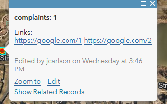 I have a related table with a URL field. I have tried in Arcade to pull those related links and place them in the popup, with no success. The reason I am trying to do this instead of clicking on the "show related records" in the popup - is that having crews use this route, is two less clicks for them to navigate out in the field. They would like the fastest route to be able to click on the URL link.
