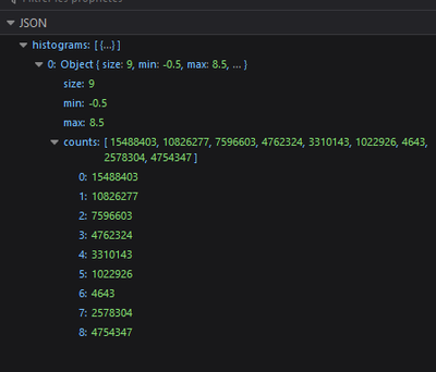 Here is the server response from the 'histograms' REST endpoint