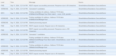 I'm running into an issue with one of our in-house street address locators. The short version of it is that the locator functions as intended when forward geocoding a partially filled address, but the moment the full address is provided, the score drops to 0 and no result is returned. This only happens with the hosted locator service. The local locator file finds a match with a 100 score as intended. See below for more details.