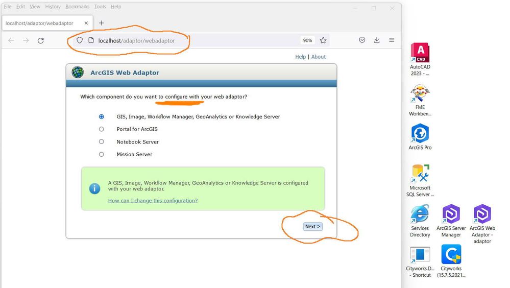 As the “GIS, Image, Workflow Manager, GeoAnalytics or Knowledge Server” option is selected and the “next” button is clicked, the link is redirected to: