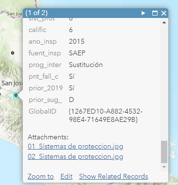 3. I have a table of photos tha I created, where each row represents a photo, this table has id_saep, so it is possible to relate it with my feature class (bridges).