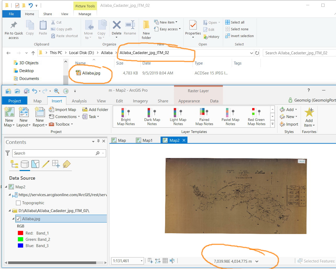 It could have been 'defined' that way (ie the Define Projection tool). It doesn't mean it is that coordinate system. The only way you can tell is to figure out from the actual coordinates whether it is in decimal degrees or a projected coordinate system. Just use the *.jpg and *.jpw, and copy them to a new folder. Load them in an empty map, if the coordinates look like decimal degrees, then 'Define' them as such. If you need them projected, the use the Project Tool and re-examine the *.jpw. From your previous post, the ...casdastr… file looks like the longitude is near 0 and the latitude is near 20 with a cell size of 0.0025 degrees. If the xml and aux files or the coordinate system says ITM, then it was Defined wrong