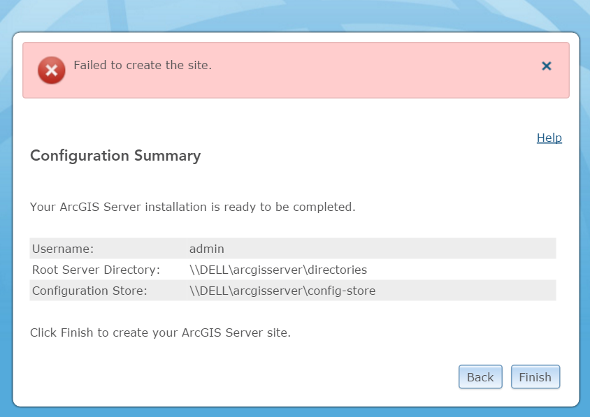 Unable to create new site in ArcGIS Server Setup Wizard
