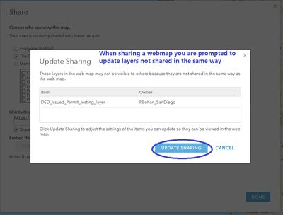 When I updated an Experience Builder page to share with a group. The Experience builder is shared however I was not prompted to Update Sharing of webmaps used in the Experience. With the amount of data that can be loaded into Experience Builder it is very easy to forget the sharing of a webmap.