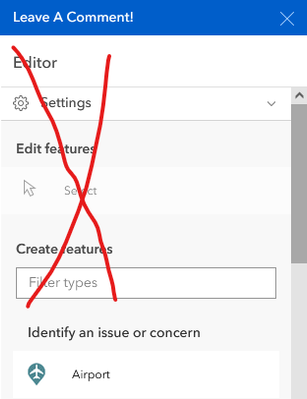 So a VP asked me to revise our experience builder editor app which is using the default editor widget. THey dont want the label 'Editor', the Settings, thing, the "Edit features", the Select arrow, or the Create features filter box in it. Basically they want it to look like the Smart Editor from WAB, which we've used numerous times in the past.