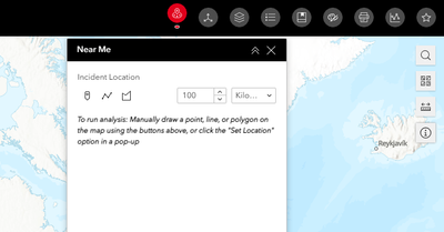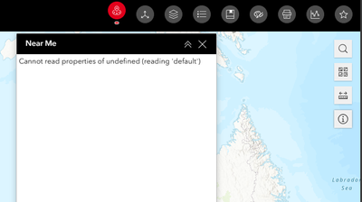 The Experience has a toolbar at the top. Looking at two widget as indicators (layers and near me), all seems to work in Chrome; layers sometimes work in Firefox but near me never works; and no widgets work in Edge.