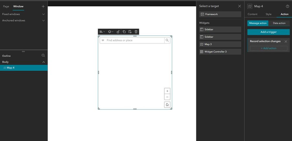 For example, after removing everything from my app, if I add a single map widget back and then go to Action > Record Selection, a number of widgets are listed that are nowhere to be found in the app. See the attached pictures. These are the widgets that caused my issues. They are present in the JSON but cannot be deleted in the app or opened to trigger an update to the newest version.