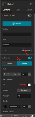 I created a square button to look like a map tool button, and I used the info icon instead of text. How do I change the color of the icon on hover? I would like the icon to turn blue on hover like any other map tool. Alternatively, I've thought about putting the button near my widget toolbar to look like another widget widget, but then I still need to figure out how to change the color of the icon to match the icon color of the widgets.