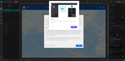 Thank you, this gets us probably 60% of the way there, but in the Experience Builder first boot, there are usually 2 parts that light up: The window itself for the text info and buttons (skip and next), and then the part of the UI that is in the spotlight (such as the canvas, the widget selector, etc) along with a bright light/animated highlight around the feature it's currently directing your attention towards.