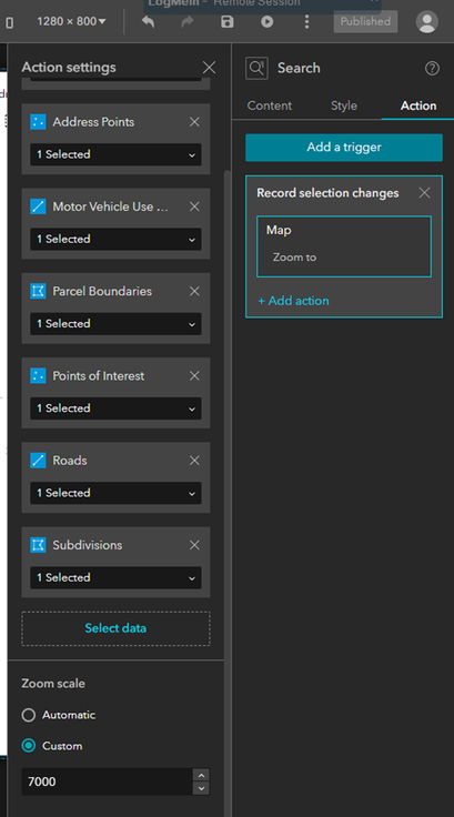 Also, if I search for a parcel or owner, it works ok but filters out the entire map by default now instead of allowing me to choose whether the map filters or not from the widget actions settings panel. This is not OK, we have the option to filter the map view or not filter the map view through the Action settings panel, we don't want to be forced into a filtered map view because that doesn't meet every use case scenario that we have.