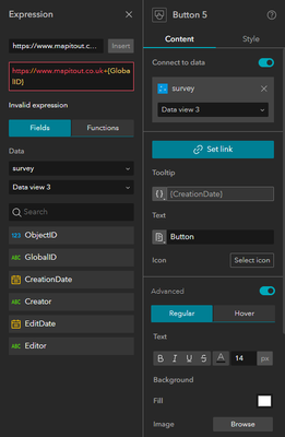 Thanks for sharing this image, but I've got a dumb question in relation to it.  I'm trying to feed some dynamic URLs with experience builder parameters through a button and everything seems to be working, but I can't for the life of me figure out how to copy and paste text into the expression.