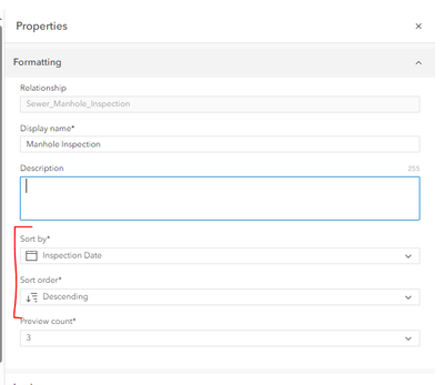 I am unable to sort the related records table within the Edit Widget. I would like to sort by the Inspection Date field to show recent inspections at the top of the related records.