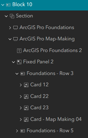 I'm trying to create an Experience Builder for a GIS Training Library. I've tried a mix of row, flow row, column, card etc. widgets as well as custom px/% vs. auto settings for sizing. I'm having trouble with organizing my layout so that text isn't cut off and widgets aren't overlapping one another.