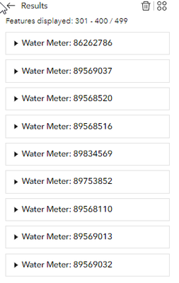 I'm using the query widget in EB to show different meter types within specific meter routes. Simple 'select by location' workflow. I am using the search tool to select the appropriate polygon feature and I have three queries for the three meter point layers (two are feature classes pulled in from internal servers and one is a map image layer) that filter out the meters contained within the selected polygon feature. Two out of the three meter layers work just fine with the query. The third gets weird results every time I run it. On occasion it returns the correct number and displays them all in the list, others it will return 2/50 and only list two features in the results list even though it should be listing all of them.